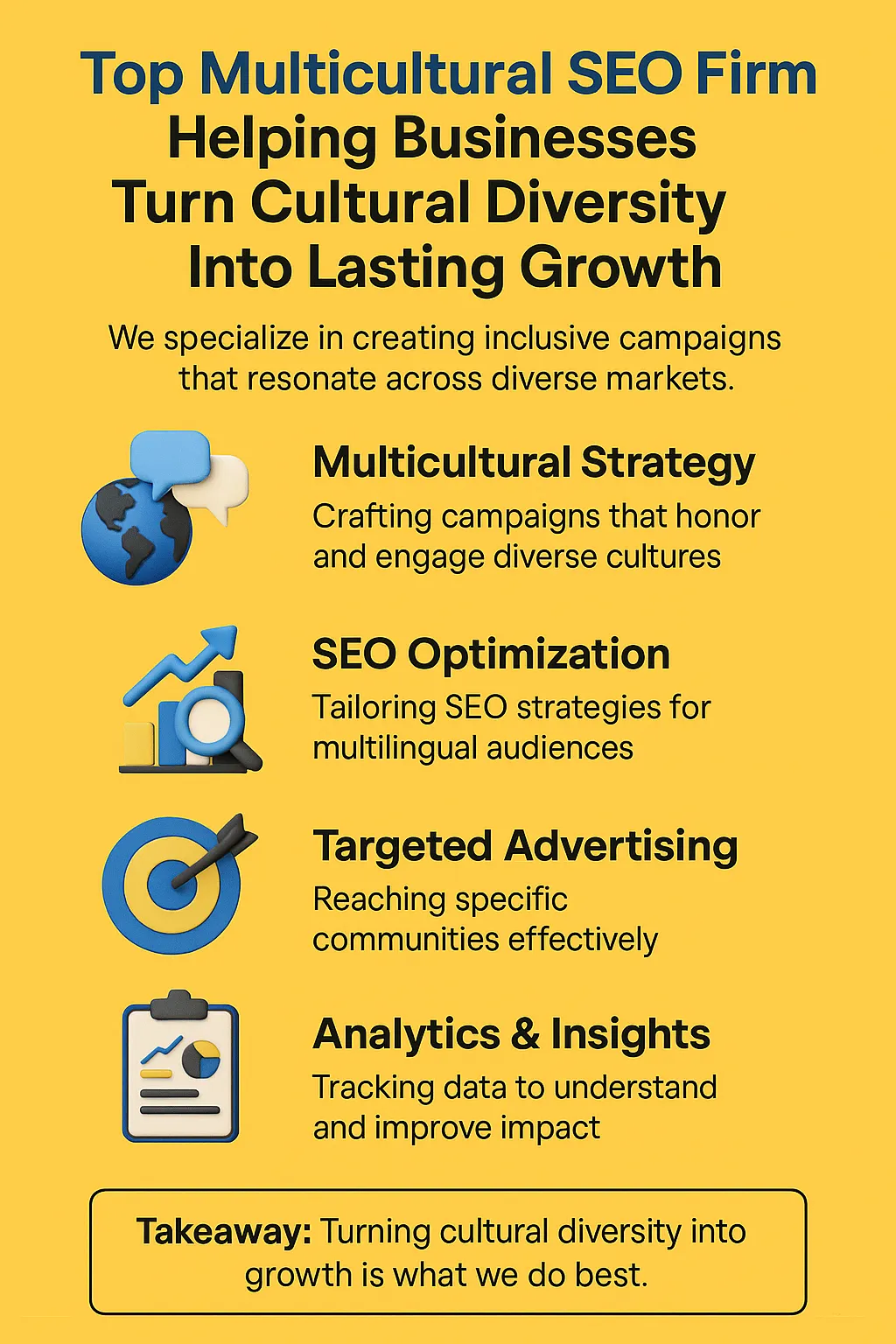 This page shares how they help businesses transform diversity into strength. By combining search optimization with cultural intelligence, they don’t just deliver clicks—they deliver campaigns that resonate, inspire loyalty, and unlock sustainable growth across every audience with the expertise of a top multicultural SEO marketing ads firm.